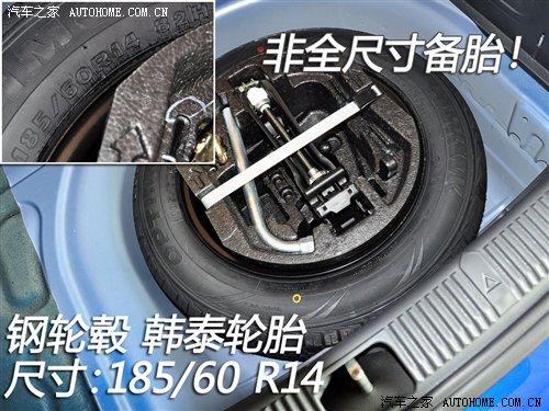 根據(jù)配置的不同,晶銳裝備185/60 R14和195/55 R15兩種尺寸的輪胎,除了1.4手動(dòng)精致版外其他都是鋁合金輪轂。備胎尺寸為185/60 R14,可以發(fā)現(xiàn)晶銳的輪胎和備胎尺寸與POLO相同,輪胎品牌也一樣,都是韓泰,只是在型號(hào)上有差別,不過綜合性能應(yīng)該不相上下。