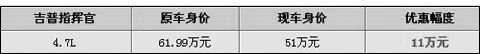 市場(chǎng)情況:在4月底的時(shí)候,北京吉普指揮官的讓利幅度達(dá)到4萬元,但是似乎并未吸引太多的消費(fèi)者。隨著金融危機(jī)的蔓延及商家促銷心理的膨脹,這款車型再次出現(xiàn)一個(gè)讓利高峰,幅度高達(dá)10萬余元。雖然這款車型并不屬于主流的越野車,但是其知名度和口碑還是頗值得信任,而51萬元的車身價(jià)想必確實(shí)能大大激發(fā)消費(fèi)者的購買欲,性價(jià)比甚高。