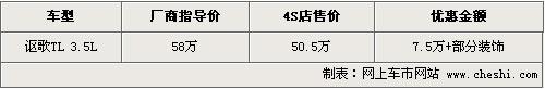 據(jù)4S店銷售人員介紹,目前謳歌TL現(xiàn)車最高可優(yōu)惠到50.5萬元,而原來廠商指導(dǎo)價(jià)格為58萬元,直降幅度達(dá)到了7.5萬元,同時(shí)部分店內(nèi)還將贈(zèng)送一部分車內(nèi)裝飾。目前現(xiàn)車供應(yīng)比較充足,主要有黑色、銀色、灰色、紅色等。欲購(gòu)車的消費(fèi)者可以到店試乘試駕這款車。