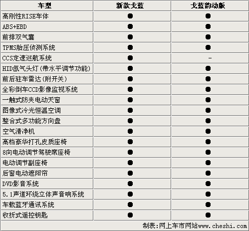 新款戈藍(lán)還增加了戈藍(lán)韻動版車型,這款新車在整車的設(shè)計方面都有新的變化。在外觀方面,戈藍(lán)韻動版采用深灰色HID大燈、運(yùn)動型灰色涂裝水箱護(hù)罩以及多幅動感鋁合金輪轂。內(nèi)飾方面采用了黑色內(nèi)飾風(fēng)格,配備了12聲道環(huán)繞立體聲喇叭和運(yùn)動型金屬踏板,使整車看上去更具運(yùn)動氣質(zhì)。