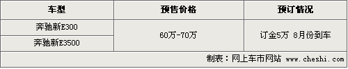 據(jù)4S店銷售人員介紹,目前奔馳老款E級各4S店已經(jīng)停產(chǎn),不再接受消費者預訂,而新款E級可以接受預訂,訂金為5萬元,銷售人員介紹預計8月份可以到車。首批到車的是進口的新E300和E350,預售價格在60萬元-70萬元之間。同時銷售介紹6月份北京地區(qū)將有新E級的巡展活動舉辦,關注這款車的消費者可以留意4S店的相關信息。