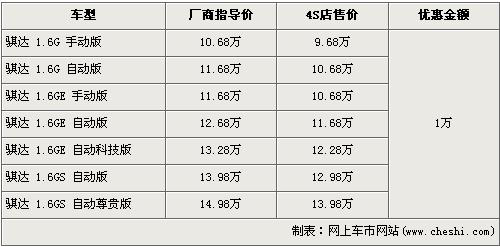 據(jù)東風(fēng)日產(chǎn)4s店銷售人員介紹,目前東風(fēng)日產(chǎn)騏達(dá)全系優(yōu)惠1萬元。經(jīng)優(yōu)惠優(yōu)惠后,入門級的1.6G手動版售價下降到了9.68萬元,而全系最高配的1.6 GS自動尊貴版售價也降到了13.98萬元,跌破了14萬元。銷售人員還介紹,目前店內(nèi)沒有騏達(dá)現(xiàn)車,欲購買者需交2000元訂金約等兩個月時間。