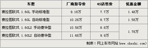 據(jù)經(jīng)銷商處銷售人員介紹,賽拉圖歐風(fēng)全系最高出現(xiàn)1.78萬元的優(yōu)惠。賽拉圖歐風(fēng)在售的有4個車型,入門級的1.6L手動標(biāo)準(zhǔn)版的優(yōu)惠金額上漲到了1.48萬元,售價從廠商指導(dǎo)價9.18萬元降到7.7萬元,1.6L豪華版的手動版和自動版車型都經(jīng)全系最高1.78萬元優(yōu)惠后,售價分別降至8.8萬元和9.9萬元。銷售人員還介紹,目前賽拉圖歐風(fēng)車型比較緊張,現(xiàn)車數(shù)量一般。