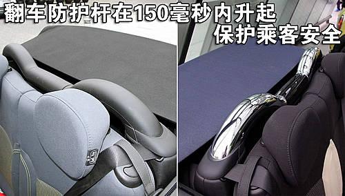 新一代Mini Cooper和Mini Cooper S敞篷版標配機電操控翻車防護桿,其隱蔽在后座椅后面。車內(nèi)中央安全電子控制系統(tǒng)在車身可能發(fā)生翻滾的150毫秒內(nèi),可以迅速升起防護桿,從而保證車內(nèi)駕乘人員的安全。