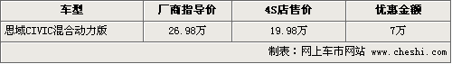 據(jù)4S店銷(xiāo)售人員介紹,目前思域混合動(dòng)力版車(chē)型現(xiàn)車(chē)并不多,消費(fèi)者購(gòu)買(mǎi)現(xiàn)車(chē)可以直接優(yōu)惠現(xiàn)金5萬(wàn)元,如果選擇訂車(chē)的話則最高可以優(yōu)惠到7萬(wàn)元,優(yōu)惠后售價(jià)僅為19.98萬(wàn)元。訂車(chē)的話訂金為2000元,需要等待約一個(gè)月時(shí)間。