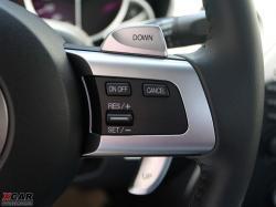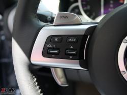三輻真皮方向盤(pán)融合了7個(gè)多功能控制按鈕,方便Driver對(duì)不同功能進(jìn)行調(diào)節(jié)。當(dāng)然,撥片換擋這一運(yùn)動(dòng)車(chē)的標(biāo)志性配置同樣出現(xiàn)在方向盤(pán)后面,左右兩側(cè)各一組,兩手同為“按減撥增”的設(shè)計(jì)方便適應(yīng)不同的駕駛習(xí)慣。