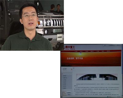 記者:“我的身后就是此次收購美國通用悍馬汽車的四川騰中重工機(jī)械有限公司,這家公司位于成都市新津工業(yè)園區(qū),這家企業(yè)在當(dāng)?shù)厥窍喈?dāng)?shù)牡驼{(diào),我們來到這里的時(shí)候發(fā)現(xiàn),這里的廠門上沒有任何關(guān)于廠名的字跡,只有后面的那個(gè)標(biāo)志告訴我們這里是騰中重工的所在地。據(jù)我們了解,這家企業(yè)主要生產(chǎn)橋梁機(jī)械和一些機(jī)械設(shè)備,并沒有生產(chǎn)整車的經(jīng)驗(yàn),那這樣的一家企業(yè)憑什么收購?fù)ㄓ煤否R呢?”