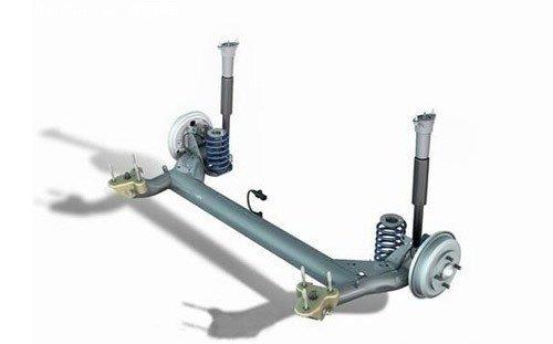 說完了獨(dú)立式懸掛,我們再來說說非獨(dú)立的,其中最有名,使用最廣泛的當(dāng)然就是扭力梁式(又稱拖曳臂式)半獨(dú)立懸掛。它是用一根粗大的扭力梁把左右兩側(cè)的縱向搖臂焊接在一起,這種懸掛的優(yōu)點(diǎn)是結(jié)構(gòu)簡單,左右兩側(cè)車輪處所占用的空間很少,同時車身的外傾角沒有變化,避震器不發(fā)生彎曲應(yīng)力,所以摩擦小,乘坐性佳。如果調(diào)校得當(dāng),可以用最少的成本和空間達(dá)到最好的效果,所以現(xiàn)在的小型車和緊湊型車多采用這種形式的后懸掛。