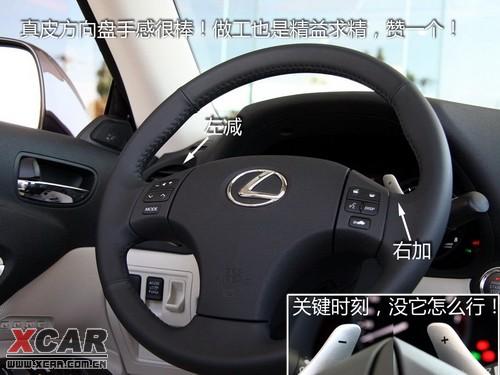 除了色調(diào)外,IS300C的內(nèi)部設(shè)計與普通車型基本上一致,不過我倒是覺得儀表盤IS300C完全可以再炫一些,“風(fēng)”要由內(nèi)而外的“拉”。IS系列的方向盤手感很棒,真皮材質(zhì)很細(xì)膩,粗細(xì)也非常趁手,普通車型都具備的換擋撥片當(dāng)然也不會缺席。