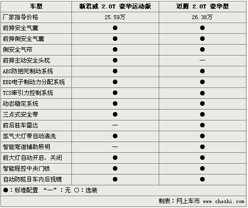 在豪華配置方面,新君威2.0T和邁騰2.0T更是不遺余力的配備各自高端配置,電動(dòng)天窗、定速巡航、電動(dòng)座椅、座椅電加熱以及分區(qū)自動(dòng)空調(diào)均稱為兩款車的標(biāo)準(zhǔn)配置。但新君威2.0T配備的電磁隨速轉(zhuǎn)向系統(tǒng),讓其整體的操控性略高于邁騰2.0T。此外,邁騰2.0T配備的電子手剎、12向電動(dòng)真皮坐椅和電動(dòng)折疊后視鏡等配置,似乎要比新君威2.0T更加時(shí)尚。