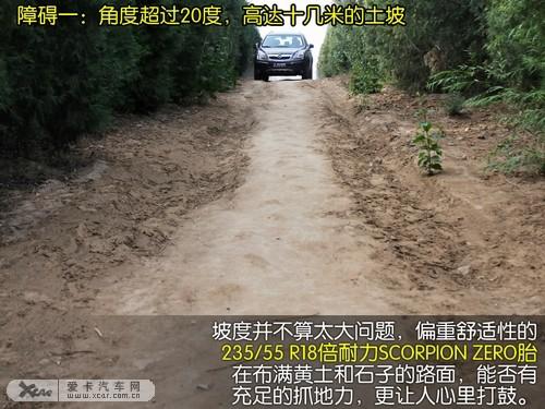 首先,我們先來到了第一個坡度超過20度高達(dá)十幾米的土坡。這時安德拉所配備的DCS下坡輔助功能終于有了用武之地,其實坡度并不算最大的問題,布滿黃土和石子的路面,讓我們對安德拉所使用偏重操控性的235/55 R18倍耐力SCORPION ZERO胎的抓地力有所擔(dān)心。這時一味的沖動和冒險絕對是不明智的,副駕駛的探路顯得尤為重要。