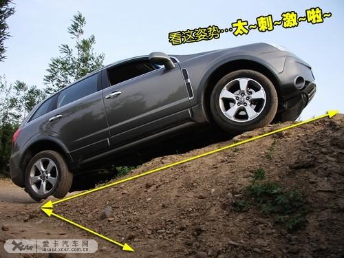 上坡容易下坡難,上坡時(shí)由于車身重心均轉(zhuǎn)移至后方,使上坡時(shí)接近角依然富裕。下坡則是另一番景象,由于車頭向下,車身重心均轉(zhuǎn)移到車頭位置,小心翼翼控制剎車,任何一個(gè)輕微的點(diǎn)頭,都可能減少接近角度數(shù),最終有驚無(wú)險(xiǎn)的克服了這一障礙。