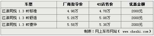 據(jù)銷(xiāo)售人員介紹,現(xiàn)在北京銷(xiāo)售同悅系列車(chē)型主要為1.3L三廂舒適版以及豪華版車(chē)型,同悅RS也是近期進(jìn)駐各店,與三廂版優(yōu)惠保持一致。問(wèn)及1.5L的同悅系列車(chē)型何時(shí)到店尚不知曉,不過(guò)現(xiàn)階段購(gòu)買(mǎi)1.3L同悅?cè)龓嫒弟?chē)型可給出2000元的現(xiàn)金優(yōu)惠。
