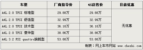 3.奧迪A4L全系現(xiàn)車少 預(yù)訂最短等一周時間