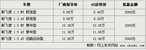 新飛度一直是AO級(jí)市場(chǎng)最熱銷的一款車型之一,動(dòng)感時(shí)尚的外觀是最大的亮點(diǎn),其次運(yùn)動(dòng)感強(qiáng)烈的內(nèi)飾方向盤,頂配裝有運(yùn)動(dòng)座椅。而最值得一提的是新飛度在城市行駛具有非常經(jīng)濟(jì)的油耗,所以廣受歡迎。目前筆者從廣州本田經(jīng)銷商處了解到,新飛度現(xiàn)在最高可優(yōu)惠現(xiàn)金5000元,具體行情如下: