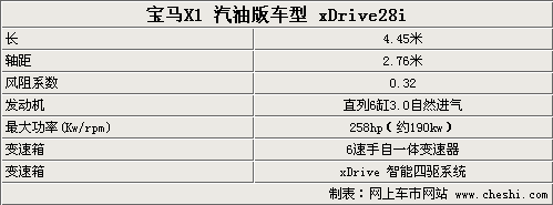 寶馬X1的長度為4.45米、軸距為2.76米,這只比寶馬X3的長度短了10厘米和3.5厘米。對于如此大的車身尺寸,寶馬方面也考慮到了X1的推出有可能會阻礙較大型SUV(如X3)的銷售。不過更大的尺寸卻意味著X1可能裝下更強勁的引擎、變速器和4驅(qū)系統(tǒng)。