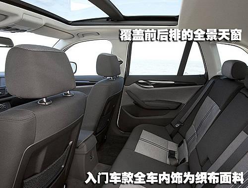 已經(jīng)出現(xiàn)在現(xiàn)款X3身上的全景大天窗同樣也會(huì)出現(xiàn)在BMW X1配置中,在同級別車型中并不多見的差尺寸天窗一定會(huì)受到不少潛在車主的喜愛。
