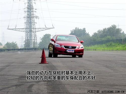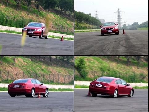 經(jīng)過了城市道路和高速公路上對這款GS450h的體驗,感覺穿樁測試對于這款車來說應該不算是什么難事?烧娴搅藴y試場地上,GS450h的表現(xiàn)并不像我們想象的那樣。這款車的懸掛雖然是可調的,但即便是運動模式,還是有對于舒適性能的考量,懸掛還是有點軟。所以在穿樁這種比較強調運動性能的環(huán)節(jié),車身的側傾還是顯露出了一些。雖然說因為把一塊大電池放在了后座的后面,使得GS450h的前后重量比達到了50:50,但實際上這款車的操控性并不像那些真正注重運動性能的車型的操控性那么優(yōu)秀,方向盤的指向在樁間表現(xiàn)比較輕,動力的跟進也還算可以,但后輪在樁間明顯感覺有點笨重,而且車內的防滑控制接觸開關時無法將防滑系統(tǒng)徹底關閉的,所以在穿樁的過程中防滑控制總是會干預,所以想要開著GS450h在穿樁場地上跑出個很好的成績真不是一件容易的事情,或者說它就不是干這事兒用的。