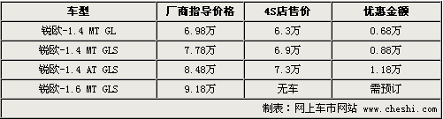 據(jù)4S店銷(xiāo)售人員介紹,目前銳歐全系優(yōu)惠幅度并不大,現(xiàn)售主要是1.4L排量車(chē)型,由于賽拉圖兩廂和三廂完全能夠滿足消費(fèi)者的購(gòu)車(chē)需要,所以幾乎沒(méi)有消費(fèi)者選購(gòu)1.6L排量的銳歐。1.4L三款車(chē)優(yōu)惠價(jià)格從0.68萬(wàn)元到1.18萬(wàn)元不等,同時(shí)店內(nèi)有銀色、紅色等現(xiàn)車(chē)可供選購(gòu),現(xiàn)車(chē)顏色較為齊全,消費(fèi)者選擇的空間比較大。