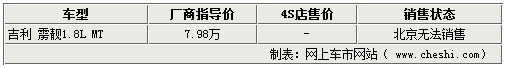 經(jīng)銷商表示,吉利靂靚跑車因排放原因而退出了北京市場,各家店內(nèi)都沒有現(xiàn)車也無法銷售,全系車型僅提供除北京以外的排放標準為國三的外地省市,非常遺憾。不過銷售人員表示,全新的吉利中國龍將有望很快開始銷售,望消費者繼續(xù)關(guān)注吉利跑車的動態(tài)。