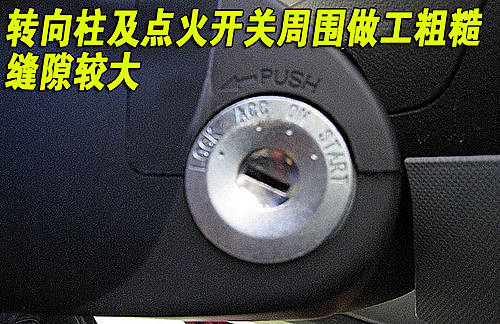 天津一汽威姿V1采用了傳統(tǒng)的點(diǎn)火方式,不過(guò)通過(guò)圖片我們可以非常明顯的看到,鑰匙孔周圍的縫隙較大,其做工還有提升的空間。