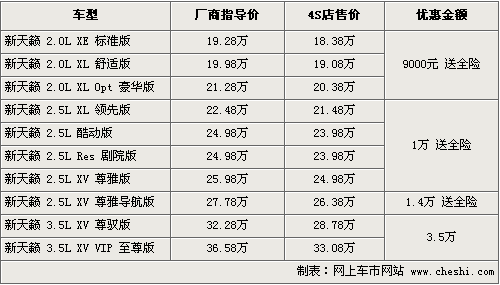 據(jù)4S店銷售人員介紹,目前消費(fèi)者購買新天籟2.0和2.5排量車型分別贈送價(jià)值8000元左右的全車保險(xiǎn),除此之外,現(xiàn)車現(xiàn)金優(yōu)惠從9000元-3.5萬元不等。其中2.0排量現(xiàn)車優(yōu)惠9000元,優(yōu)惠后最低僅售18.38萬,2.5L低配版優(yōu)惠1萬,高端導(dǎo)航版優(yōu)惠1.4萬,3.5排量則最高達(dá)到了3.5萬現(xiàn)金優(yōu)惠。目前2.0L和2.5L排量車型有黑色、白色、紫色等現(xiàn)車供應(yīng),但數(shù)量有限,部分車型還需要預(yù)訂。