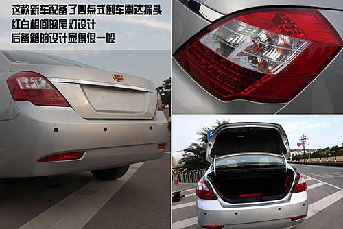 帝豪EC718的尾部設(shè)計也非常漂亮,線條流暢,造型也比較新穎。尤其是尾燈和霧燈的設(shè)計,看上去更加成熟、穩(wěn)重。而這款新車尾部配備了四點式倒車雷達探頭,后排氣管采用隱藏式設(shè)計。后備箱的設(shè)計比較一般,開口寬度不是很大,而且尾門支撐并沒有采用液壓挺桿。