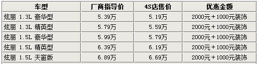 據(jù)4S店銷售人員介紹,長(zhǎng)城炫麗雖然上市時(shí)間較長(zhǎng),但現(xiàn)車銷售狀況卻表現(xiàn)一般,所以為了盡快進(jìn)入暑期的促銷旺季才開(kāi)始優(yōu)惠銷售。另外,4S店銷售人員也表示,現(xiàn)車的車型和顏色并不是很全,現(xiàn)在購(gòu)買炫麗系列車型,消費(fèi)者不僅可享受現(xiàn)金優(yōu)惠,還可以贈(zèng)送地膠、腳墊、貼膜等價(jià)值千元的裝飾,但不能折現(xiàn)。