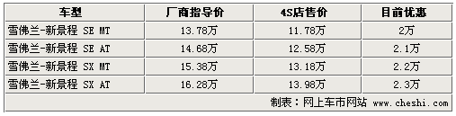 據(jù)4S店銷售人眼介紹:目前新景程現(xiàn)車非常充足,顏色也較為齊全,。目前優(yōu)惠幅度最高可達2.3萬元,最少也在2萬元。最低配置車型已經(jīng)下降至11.78萬元。