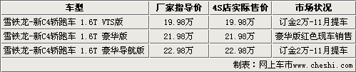 記者從北京地區(qū)進(jìn)口雪鐵龍經(jīng)銷商處了解到,目前剛上市的C4轎跑車已經(jīng)有展車到店,并只有售價(jià)21.98萬元的一款車型可以現(xiàn)車銷售,而且只有紅色一款車型,提車不需要加錢。其余兩款車型均需要提前預(yù)定,訂金為2萬元,車主最早可以在11月份提到現(xiàn)車。