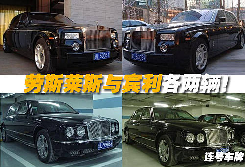 除此之外,黃光裕還擁有兩輛黑色的勞斯萊斯-幻影Phantom,兩輛黑色的賓利-雅致Arnage并且車牌的尾數(shù)都是連著的。除去其它車型不說,就這四輛車的價值就已經(jīng)超過了2000萬元人民幣了。