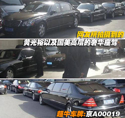 有網(wǎng)友爆料,在昆侖飯店拍到黃光裕等國美高層的“奢侈級”加長豪華轎車,包括黃光裕的邁巴赫62(據(jù)傳擁有兩輛),梅賽德斯-奔馳S600普爾曼等平時很難得一見的車型。可見有多么的“拉風”!