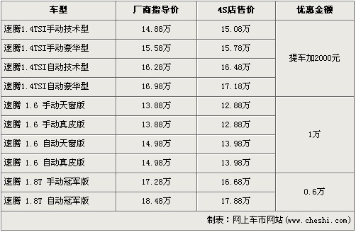 速騰全系最高優(yōu)惠1萬(wàn)元 1.4TSI加價(jià)提車(chē)