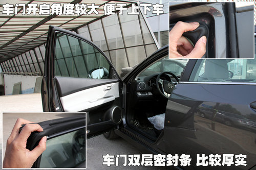 作為一款定為于中高級轎車的馬自達睿翼,車門在完全打開的情況下開啟角度適中,駕乘人員上下車輛比較方便。在車門四周裝有厚實且質(zhì)地柔軟的密封條,能夠起到很好的密封隔音作用。