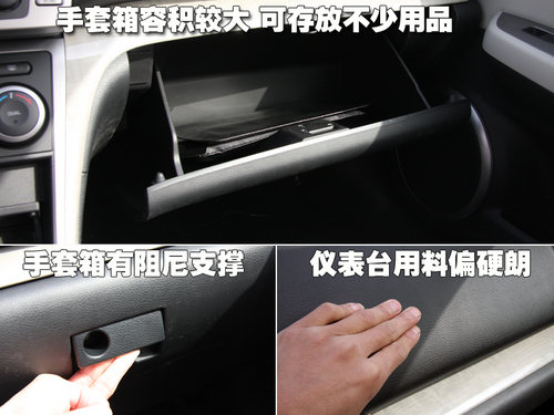 副駕駛位置的手套箱帶有阻尼設(shè)計(jì),打開時不會因重力自由下落,同時大容積手套箱能夠滿足車主日常放置常用物品的需求。儀表臺表面用料偏硬朗,但接縫十分勻稱。