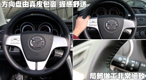 睿翼采用了真皮材質(zhì)的方向盤(pán),手握感覺(jué)很好,2.0L車(chē)型內(nèi)飾較2.5L車(chē)型少了許多配置,只有音響控制被集成到方向盤(pán)上,駕駛時(shí)調(diào)節(jié)CD更加方便,按鍵周?chē)淖龉し浅<?xì)致。