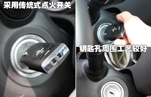 這款2.0L車(chē)型采用了傳統(tǒng)式點(diǎn)火開(kāi)關(guān),實(shí)際使用中點(diǎn)火也很快速,抖動(dòng)不明顯。睿翼頂配車(chē)型則配有一鍵式啟動(dòng)按鈕。轉(zhuǎn)向柱周?chē)淖龉ぽ^好,塑件縫隙均勻、細(xì)小。