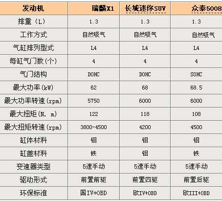 瑞麒X1采用奇瑞SQR473F 1.3L發(fā)動機,最大功率可達62kw,最大扭矩為122N.m,配合五速手動變速箱,為整車提供更好的經(jīng)濟性。鑒于瑞麟X1快1.1噸的體重以及更高的風阻,我們對這套動力并不十分滿意。但經(jīng)濟性與性價比對微型SUV來說可能更現(xiàn)實。當然,如果奇瑞能夠再采用1.5升發(fā)動機就更適合了。限于1.5排量477F發(fā)動機體積太大,小型化還是需要時間的,也許就不會裝車了。