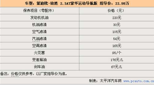 致勝首保為5000公里,之后每1萬公里保養(yǎng)一次。保修期限內(nèi),致勝車主可享受四次免費(fèi)更換發(fā)動機(jī)機(jī)油和機(jī)油濾清器的服務(wù),因此保養(yǎng)花費(fèi)會相對減少。致勝每次小保養(yǎng)費(fèi)用為312元,空氣濾清器和汽油濾清器都是每10 000 km更換一次。由于致勝剛上市不久,所以并沒有更為詳盡的保養(yǎng)價格。在購買致勝的時候,長安福特有贈送4次免費(fèi)更換機(jī)油機(jī)濾保養(yǎng)的政策,因此按這樣計(jì)算的話,2萬km之內(nèi)的保養(yǎng)花費(fèi)會比較少。