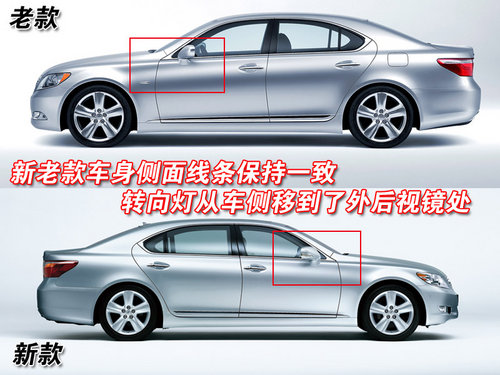 新款雷克薩斯LS 460L的前臉外觀整體風(fēng)格和老款保持一致,前大燈燈組進(jìn)行了局部微調(diào),橫向進(jìn)氣格柵加寬,霧燈部分造型與整體風(fēng)格保持一致,下方分體式進(jìn)氣口改為了整體設(shè)計(jì)。翼子板的線條帶來了更加流暢的整體視覺效果。車身側(cè)線條方面,新老款變化并不大,只是將老款轉(zhuǎn)向燈的位置移到了外后視鏡處,更加方便日常使用。同時(shí)新款車的車身高度微微降低,加長版配18寸輪轂,其他兩款配19寸合金輪轂。