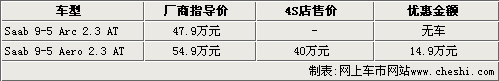 據(jù)薩博汽車4S店銷售人員介紹,薩博9-5目前現(xiàn)車比較少,而且只有9-5Aero車型可以銷售。目前購(gòu)買(mǎi)9-5Aero車型可以優(yōu)惠14.9萬(wàn)元,整車價(jià)格幾乎觸及底線,相比之前兩個(gè)月,優(yōu)惠幅度提高了2萬(wàn)元。另外全新薩博9-5也將在明年下半年引入國(guó)內(nèi)市場(chǎng),目前還無(wú)法接受預(yù)訂。