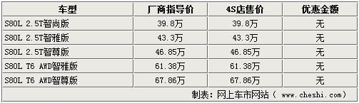 據(jù)4S店銷售人員介紹,目前國產(chǎn)2010款S80L全系車型已經(jīng)到店,處部分顏色無車需要消費(fèi)者訂車,訂金為5萬元;除此之外全系車型基本可以滿足購車需要。2010款車型中,有三款車型因增配而在價(jià)格上相比09款車型有所提升。