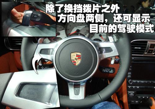 配備PDK雙離合變速器的2010款保時捷911 Turbo敞篷版,可以通過選裝帶有換檔翹板開關(guān)的新款選裝三輻方向盤取代帶有傳統(tǒng)換檔按鈕的標(biāo)準(zhǔn)方向盤。換檔翹板開關(guān)牢固安裝在方向盤上,右側(cè)的翹板開關(guān)用來升檔,左側(cè)的翹板開關(guān)用來降檔。