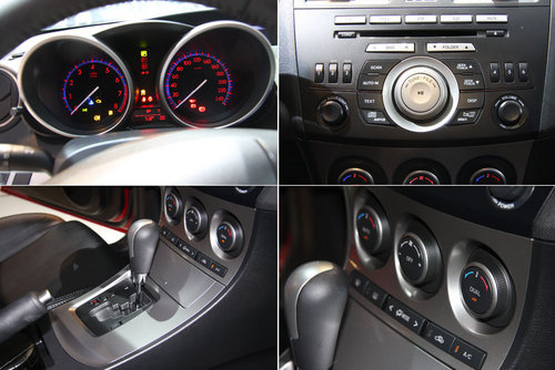 全車標(biāo)配了真皮座椅用料似乎比舊款有所提升,手感和工藝都數(shù)上乘水平。前排座椅的坐墊相比舊款分別加寬了20mm和加高了35mm,提高了舒適度之余,也增加了包裹性和高速入彎時(shí)的承托力,有效減少了身體的側(cè)滑。馬自達(dá)的multi-information display(MID)系統(tǒng),包括一塊液晶屏、智能鑰匙、無鑰匙啟動(dòng)系統(tǒng),而中控臺(tái)則標(biāo)配了6碟CD,F(xiàn)M/AM和雙區(qū)域恒溫空調(diào)控制鍵。