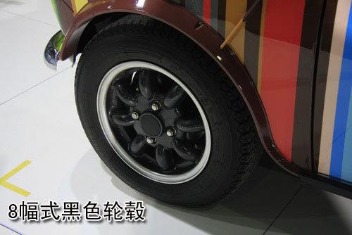 8幅邊的黑色輪轂與外形一樣可愛無比,周圍的一圈銀色另輪轂看起來運(yùn)動了不少。