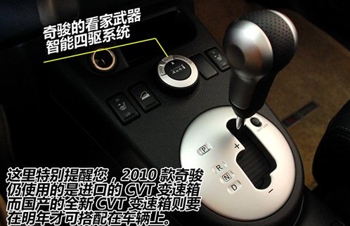 相比逍客,2010款奇駿的變化更實用一些,特別是增加了一款配置最高的2.5L四驅至尊版車型,廠家指導價為26.98萬元,外觀上和其他車型的區(qū)別就是增加前后的越野包圍,而在配置上則有DVD導航、側面攝像頭等。