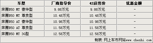 據(jù)一汽奔騰4S店銷售人員介紹,奔騰B50目前的銷售情況非常好,但現(xiàn)在所有車型顏色均不是很全,部分顏色仍需要預訂。消費者如果預訂奔騰B50,需要交付1000元訂金,而且B50自上市起到現(xiàn)在一直沒有任何優(yōu)惠活動。而3G版車型則一直處于無車的狀態(tài),還請消費者諒解。