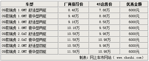 據(jù)奇瑞汽車(chē)4S店銷(xiāo)售人員介紹,瑞虎3目前現(xiàn)車(chē)齊全,除四驅(qū)車(chē)型只接受預(yù)訂,大概兩周以后可以提到現(xiàn)車(chē)外,2.0L自動(dòng)擋車(chē)型以及1.6L和1.8L車(chē)型的現(xiàn)車(chē)比較齊全,目前全系車(chē)型都可以優(yōu)惠6000元,歡迎消費(fèi)者到店賞車(chē)試駕。