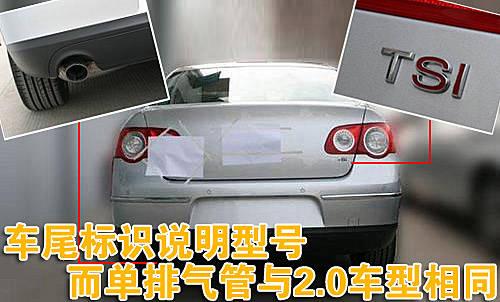 車尾“TSI”的標(biāo)識表明了邁騰1.4TSI的車型身份,由于邁騰是“B”級車,所以尾部并沒有出現(xiàn)速騰1.4TSI尾部“1.4”的數(shù)字標(biāo)識。此外,其車尾左下方的排氣管并沒有采用邁騰1.8TSI的雙排氣管設(shè)計,而是采用與邁騰2.0車型相同的單排氣管設(shè)計。