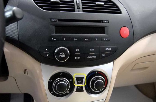 凌傲的后視鏡加熱功能屬于中高配車型才有,也就是非標(biāo)配的功能。位置在空調(diào)出風(fēng)口選擇旋鈕以及溫度旋鈕中間,也就是A/C開關(guān)之上。開關(guān)很容易的。伸手可觸。